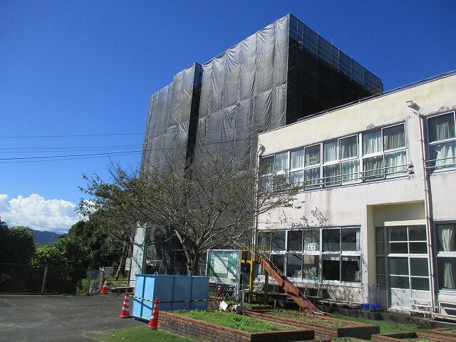 8月末にお知らせしましたように、今年度、校舎の改修工事が行われます。外壁、防水、窓ガラス飛散防止の工事です。現在、業者さんの事務所が設置されたり、特別教室棟(4階建て)とランチルームに足場が組まれたりという状況です。工事は、安全に円滑に進んでいます。いろいろとご迷惑をおかけしますが、よろしくお願いいたします。