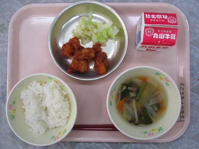 9月18日、今日も残暑が厳しい1日でした。子どもたちは、午前中の運動会練習の疲れが少々見られましたが、給食後、また元気いっぱいに活動しました!本日の給食は、港小3~6年生のリクエスト献立でした。『ヤンニョムチキン・添えキャベツ・ごもくスープ・ご飯・牛乳』でした。