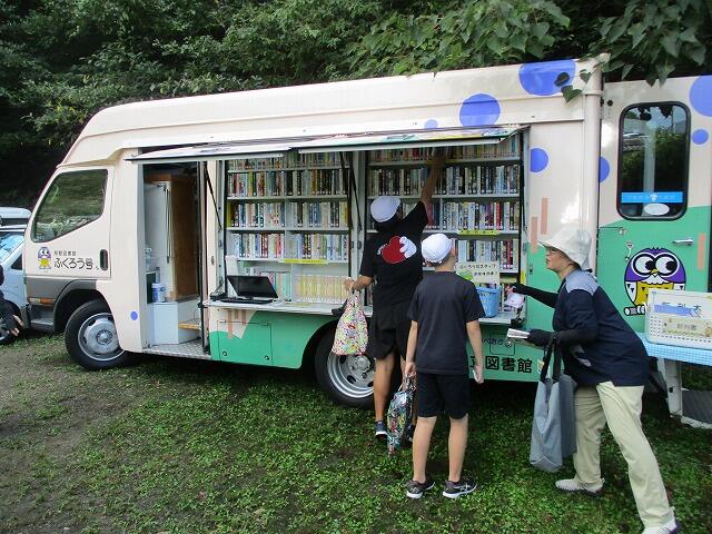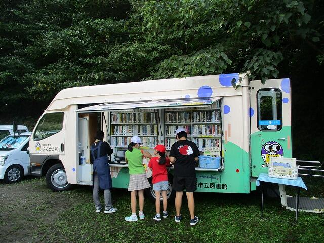 昼休みに、ふくろう号(延岡市移動図書館)が来てくださいました。工事の関係で、校内に駐車できなかったため、校門を出たところに停めてもらいました。『森の中のふくろう号』という感じでした!子どもたちは、楽しそうに本を選んでいました。次回は、10月2日(水)13:00~です。ぜひ、地域の方もご利用くださいね。