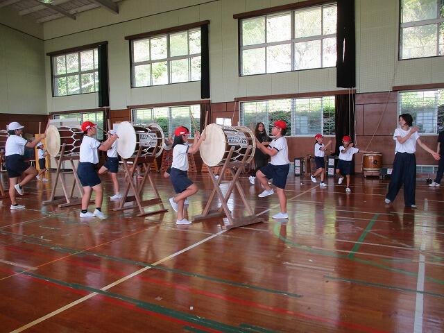 9月9日、2学期初めての『港わんぱく太鼓』の練習がありました。本日も、雲海太鼓の平野さんご夫妻に指導していただきました。体育館の蒸し暑い中での練習でしたが、子どもたちは、一生懸命練習に励みました。運動会では、5・6年生が「ばんば踊り」の太鼓を演奏します。港小学校の運動場に響く太鼓と地域の方も一緒に踊る「ばんば踊り」が、いまからとても楽しみです!