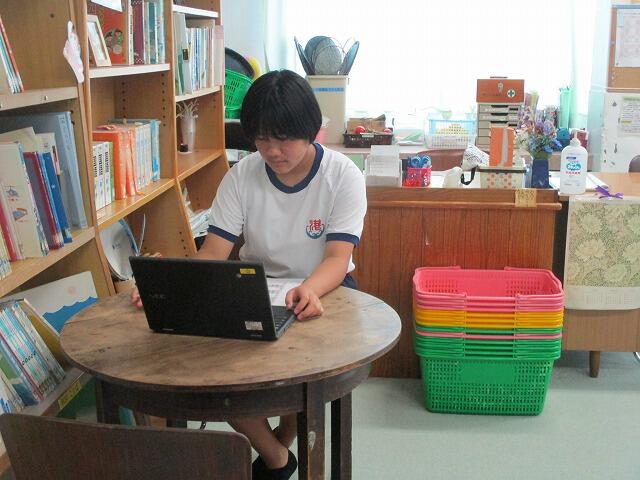 5・6年生は、外国語で学習した英語スピーチを動画に撮り、その動画を見て、更に良くするためにどうすればいいかなと話し合っていました。自分を客観的に見ることができ、するどい意見がでていました。