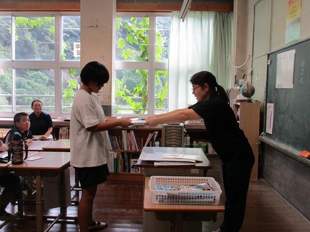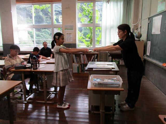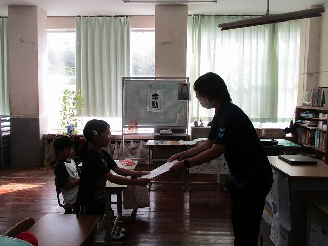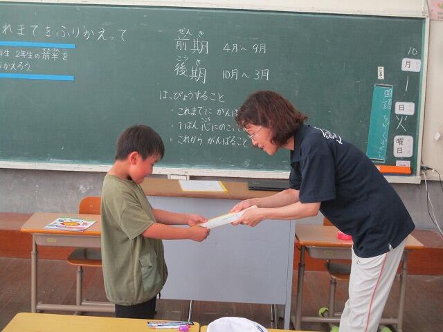 9月30日、今年度の折り返し地点です。今日は、通知票を配付しました。子どもたちが、4月~9月に、どのようなことに努力をしたのか、どのようなことができるようになったのか、どのような成長が見られたのか等、学習状況や活動の様子などが記載されています。子どもたちは、うれしそうな表情で担任の先生から通知票を受け取っていました。