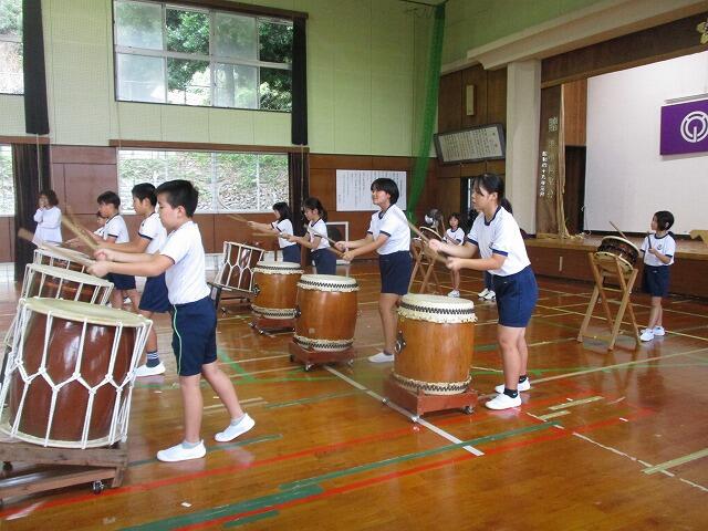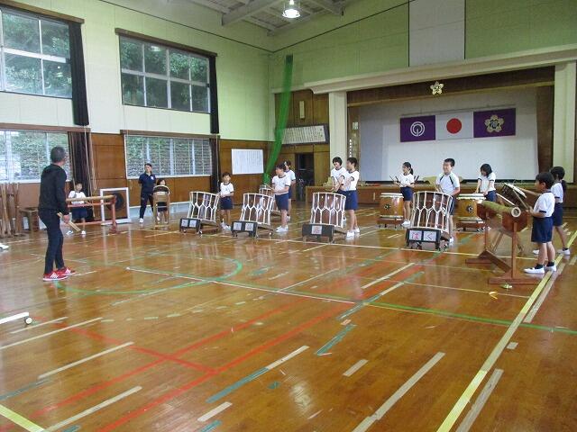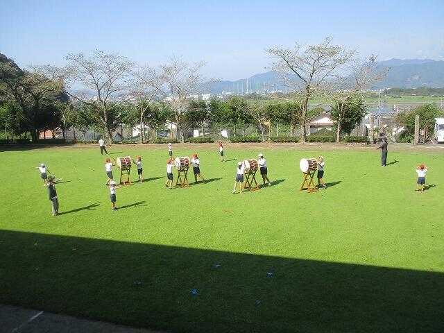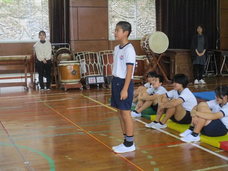 10月15日、雲海太鼓の平野さんご夫妻を招いて、太鼓の練習がありました。今回から、11月10日(日)の学習発表会に向けての練習になります。『天響』という演目です。難しいリズムですが、子どもたちは一生懸命、練習に取り組んでいます。汗をかきながらの練習でした。大変、よくがんばりました!学習発表会、お楽しみになさってください。
