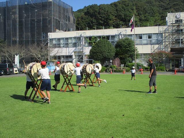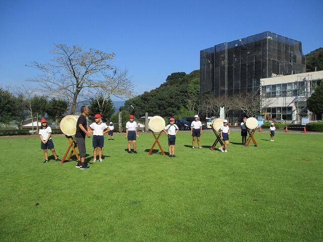10月1日、港わんぱく太鼓の練習がありました。運動会に向けて最後の練習でした。本日も、雲海太鼓の平野さんご夫妻に丁寧にご指導いただきました。今日は、太鼓を運動場に出して、本番と同じように練習しました。子どもたちは、これまで以上に真剣な表情で力強く太鼓を叩いていました。元気なかけ声も、よかったです。しっかり仕上げの練習ができ、自信をもって本番を迎えることができそうです!