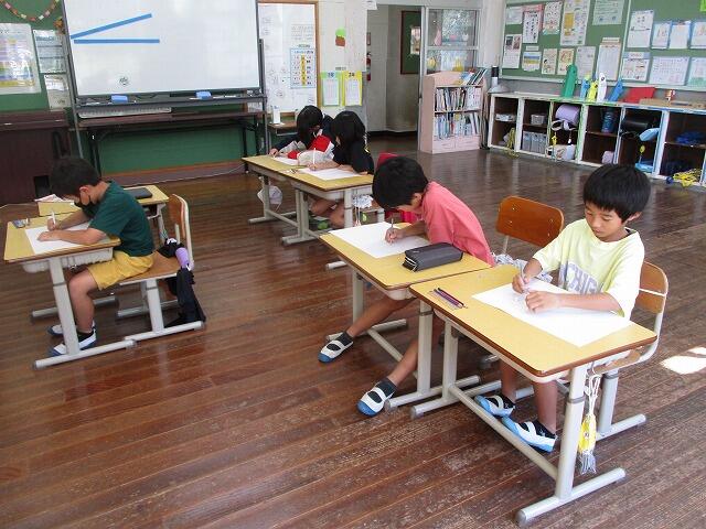 日曜日に運動会が終わり、次は『芸術の秋』を楽しんでいます。図工では、「人権作品」のポスターを描くために、下絵を描いていました。また、合同音楽では、11月の学習発表会に向けて、合奏『ミッキーマウスマーチ』の練習をがんばっていました。充実した毎日です!