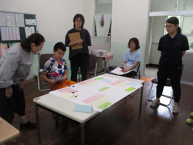 5・6年生です。自分たちで発表し合う頼もしい姿も見られました。また、ラキューでコマ作りに挑戦しているお友達もいました。パパッと組み立てることができ、すごいです!