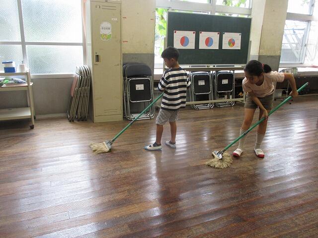 最後は、掃除の時間に、みんなで、ほうきで掃いてきれいにしました。