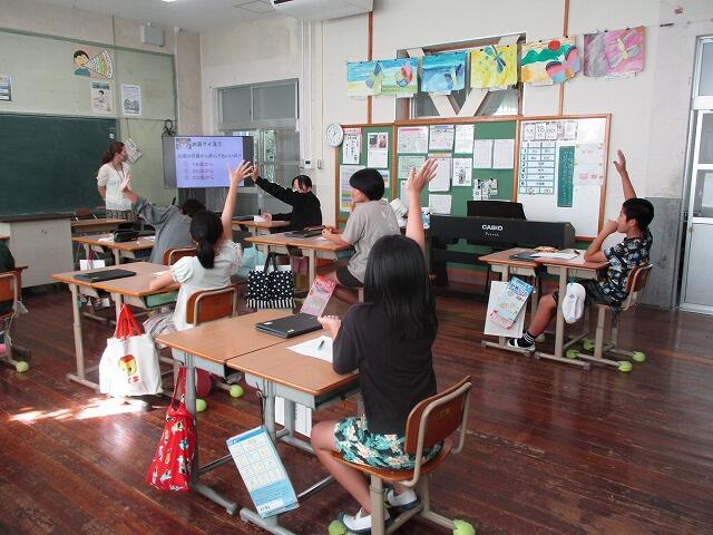 10月18日、学校薬剤師さんを講師にお迎えして、5・6年生の保健の学習で、薬物乱用防止教室を行いました。まず、薬剤師のお仕事について教えていただきました。そして、お酒やたばこの有害について、クイズを通して学びました。心も体も発達する成長期で、細胞が増え続けている子どもたちは、栄養も有害なものも吸収されやすいそうです。だからこそ、子どもの時に、有害な物が体に入らないように気をつけることが大切だと学ぶことができたようです。薬剤師さんのお話を真剣に聞き、自分事として考え、一人一人が感想を述べることができました。充実した薬物乱用防止教室でした。