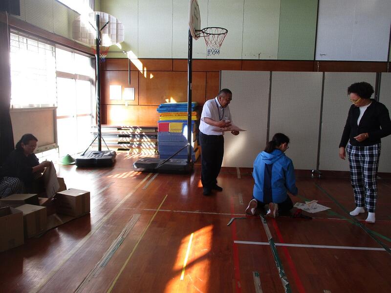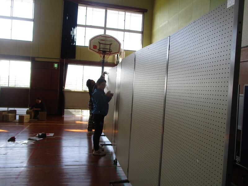 昨日は、先生たちが、会場である体育館の準備や掃除をしました。