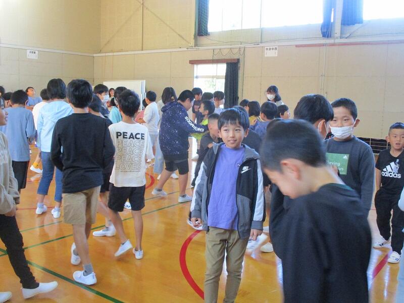 10月6日、運動会でした。小雨の降る中でしたが、開始時間を少し遅らせてスタートしました。プログラムの順番を変更したり、一部の種目を体育館で行ったりと、臨機応変に対応しながらの実施となりました。子どもたちは、急な順番の変更があったり、雨が降り出したりではありましたが、落ち着いて行動し、これまでの練習の成果を思う存分発揮しました。すばらしかったです!親子団技では、お家の方と仲良く楽しく競技し微笑ましかったです。体育館で実施したばんば踊り・ばんば太鼓には、地域の方や保護者のみなさんにもたくさん参加していただきました。大変盛り上がりました。