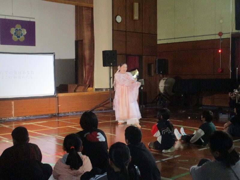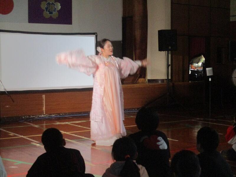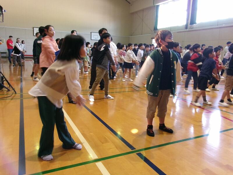 放課後子ども教室の取組で、日本舞踊に取り組んでいる子どもたちです。先月から、講師の先生をお迎えして、5回の練習をしたそうです。12月18日の最後の練習では、着物を着て、本番のようにして踊るとのことでしたので、私たち職員も見学させていただきました。とても、かわいらしい着物姿で「ちゃっきり節」を笑顔いっぱい踊っていました。柔らかな手の動きなど優雅に踊ることができており感心しました。先月の学習発表会では「茶道」発表をしました。様々な日本伝統にチャレンジしている港っ子です!日本舞踊の先生、放課後子ども教室の地域のサポーターのみなさん、ありがとうございます。