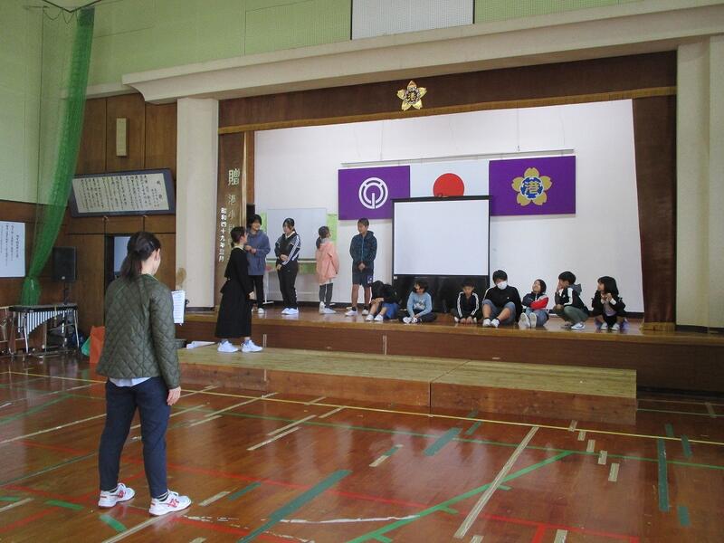 また、ステージを使っての練習も始まりました。3~6年生は、総合的な学習の時間に調べたことを劇にして発表します。楽しくてためになる発表です。