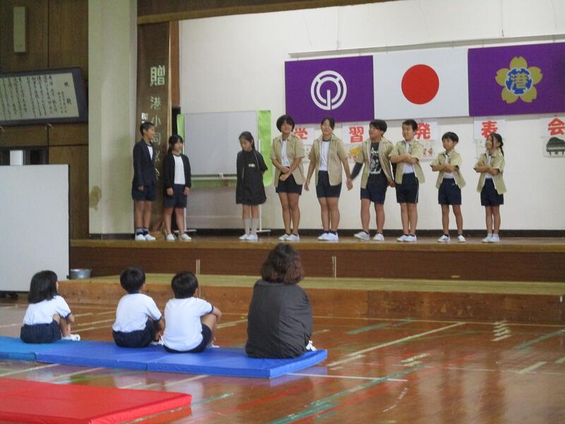 10月2日、5年生と6年生の外国語Lesson4のまとめとして、一人ずつ外国語で発表してみんなに伝える活動をしました。この発表をゴールに、これまで学習をがんばってきました。今日は、3・4年生のお友達、先生たちに聞いてもらいました。