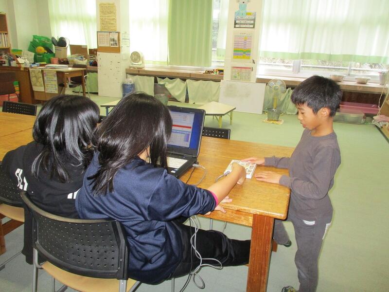3・4年生です。自分で好きな曲をつくることができるアプリに挑戦していました。方法が分かると、自由に音楽を楽しむことができそうです。