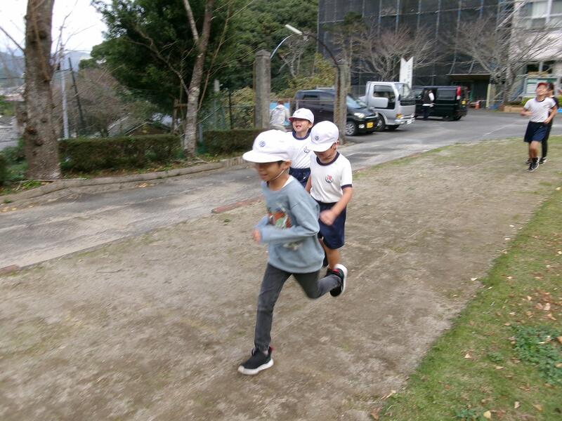 昼休みは、外遊びで体を動かしていました。逃走中(おにごっこのような遊び)で、盛り上がっていました。寒い冬も、元気に外遊びを楽しんでいます!
