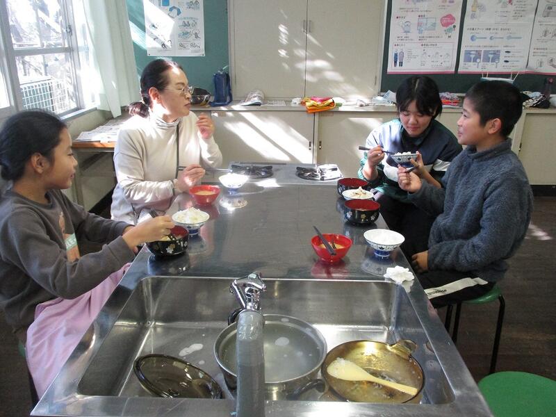 今日の給食は、『ごはん、さけの塩焼き、高菜の漬け物、おむすびのり、牛乳』でした。この献立は、明治22年に始まった最初の給食の内容です。大きいのりでおにぎりを作っておいしそうに食べていました。今日から給食感謝週間です。感謝して食事を味わってほしいと思います。