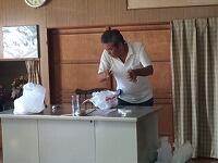地域の 『釣り名人』 3人を迎え、まずは道具作りから行いました。