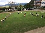 その後、団長のかけ声に合わせて、相手の団に、そして全体にエールを送る練習をしました。
