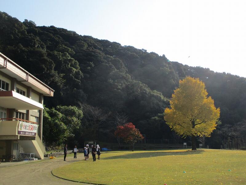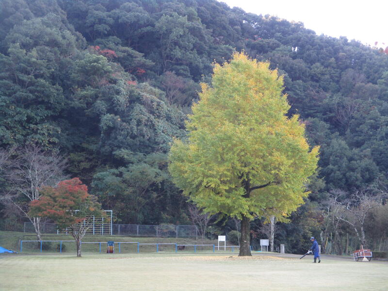 学校の運動場のイチョウとモミジが少しずつ色づいてきました。イチョウの葉っぱが毎日ひらひらと落ちてきます。今朝、技術員の先生が葉っぱを集めてくださっていました。ありがとうございます。