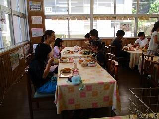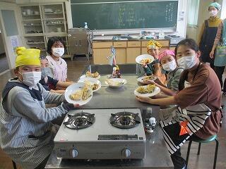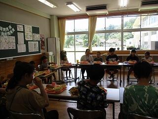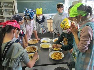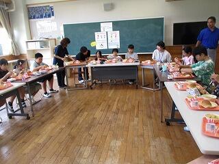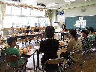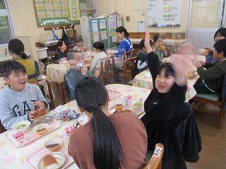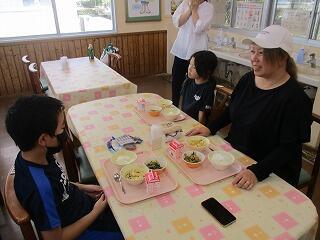 給食の時間です。この日は『チキン南蛮の日』ということで、メニューはチキン南蛮でした。3校の子どもたちがみんなそろった給食の時間、楽しくおいしく食べていました。