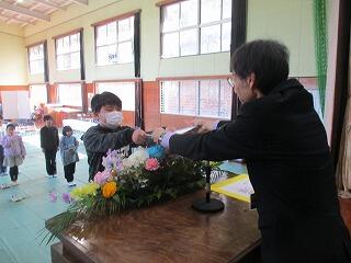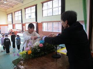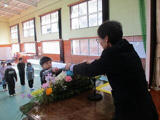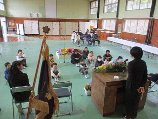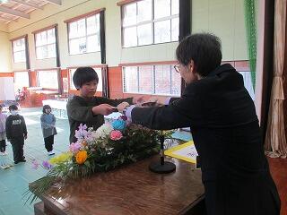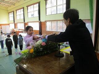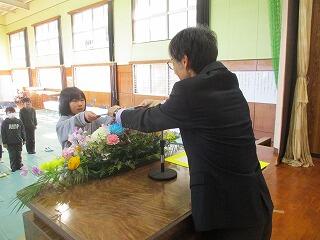 新入生1名が入学しました。2年生から6年生までの子どもたち、地域の方、保護者の方、先生たち、たくさんの花々に囲まれたすてきな入学式になりました。