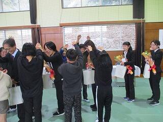 児童代表お礼の言葉の後、アーチを作って先生方をお送りしました。