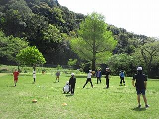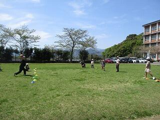 毎週水曜日は、「みんなで遊ぶ日」です。今日は、ドッジボールをして遊びました。春らしいさわやかなお天気で、思いっきり遊ぶことができました。2年生から6年生まで11名!みんな仲良しです。