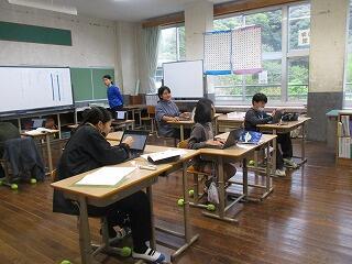 雨が降り続きます。子どもたちは、教室で、じっくりと考えたり対話をしたりしながら学んでいます。