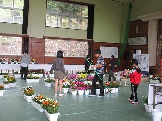 今日は、全校みんなで前日準備を行いました。たくさんのお花を運んだり、きれいに掃除をしたりと、一生懸命準備をがんばった子どもたちです。すてきな会場ができました。1年生のお友達が喜んでくれることと思います。明日が楽しみです!