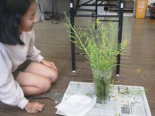 5年生は、理科で『花のつくり』を学習しています。今日は、『アブラナの花がさいた後、実はどのようにしてできるのかな?』をめあてに学習しました。まずは、虫めがねを使って、じっくり観察しました。「実って、めしべに似てるね!」というつぶやきから、めしべが育って実になるという予想をもって、調べました。教科書や動画も活用して、熱心に調べたり、友だちと話し合ったりして、一人一人が学習のまとめをすることができました。