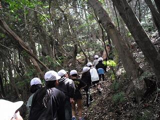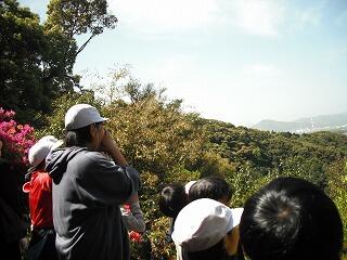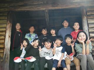 ゲームの後は、学校裏にある『冒険の森』に登り、山小屋に行きました。山小屋からの景色は、最高でした。12名そろって、元気に「ヤッホー!」コールをしました。学校にも「ヤッホー!」が響き渡りました。