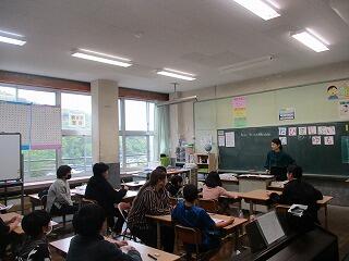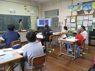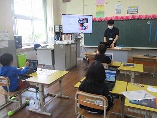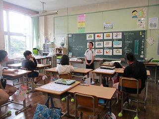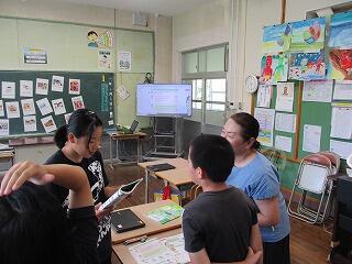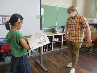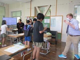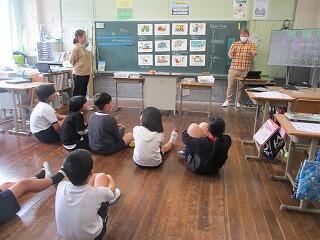 5・6年生は、ALTの先生と一緒に外国語を学習しました。「What  animal  do  you  like?」「I like ~」等、積極的に対話をする姿が見られました。