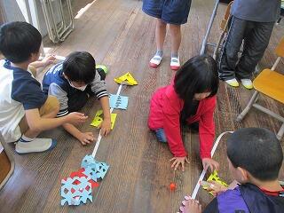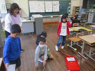 ↓3・4年生の理科「風とゴムの力のはたらき」の学習です。ゴムの力で動く車を走らせる実験をしました。また、音楽では、リコーダーの練習をがんばりました。きれいな音がでていました。