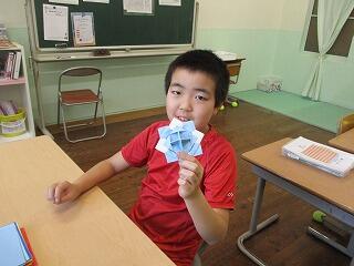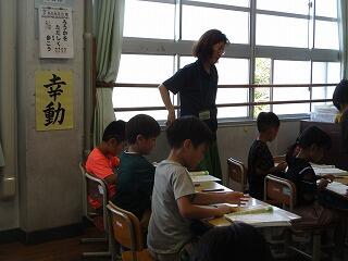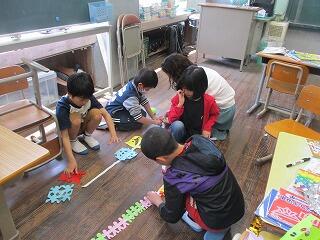 ↓ 5・6年生は算数でした。5年生は「合同な図形」、6年生は「場合を順序よく整理して」の学習でした。難しい内容ですが、がんばって考えました。