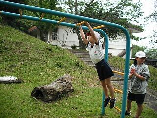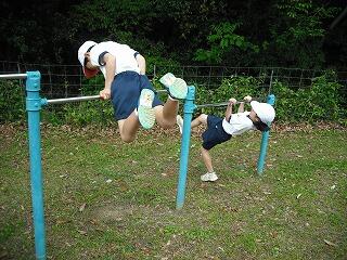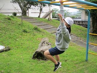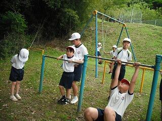 今日の体育は、校舎裏にある遊具を使っての運動をしました。先日から、体育がある日に雨が降り、なかなかできない状況でしたので、今日は大喜びの子どもたちでした。上級生が下級生に教えたり支えたりと、ほほえましい姿も見られました。いろいろな技にチャレンジし、運動を楽しむことができればいいなと思います。