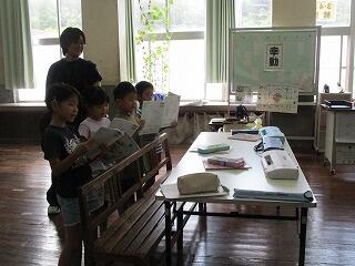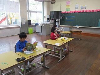 1・2年生、朝の読書タイムです。読書に集中、いい時間です。