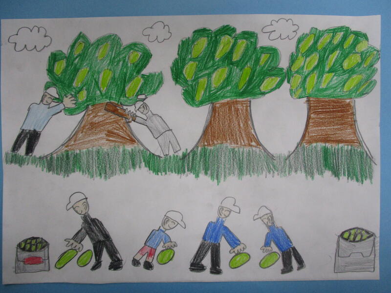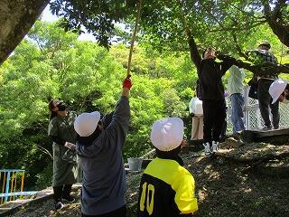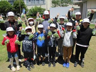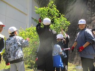 港小学校には、梅林があります。明日は、梅ちぎりの日です。地域の方も来られます。今日は、前日準備ということで、かご、秤、ブルーシートなどを準備しました。ちぎった梅は販売もするので、長机やビニール袋なども準備しました。例年に比べて梅の実は少なそうですが、子どもたちは「あした、楽しみです!」と張り切っています。