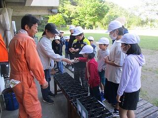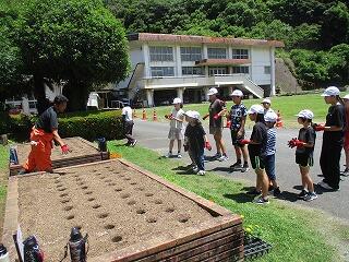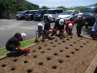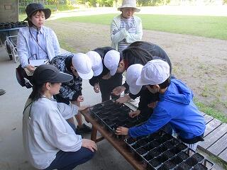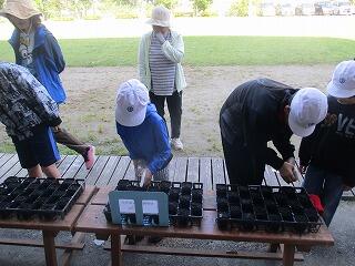 また、2学期の学習『花から実へ』に向けて、ヘチマの種まきをしました。自分たちで、進んで話し合いをして、水やり当番を決めました。発芽が楽しみです。