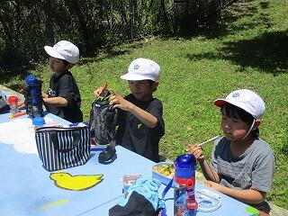 1年生です。生活科でシャボン玉をしたり、算数の学習をしたり、水遊びをしたりしました。