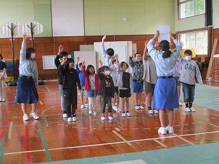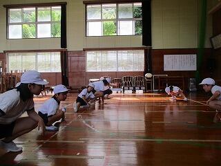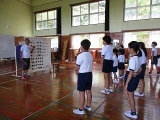 4時間目は、全校体育でした。子どもたちは、体育が大好きです。「次は、体育だ!」と言いながら、すばやく並んで、体育館へ移動しました。