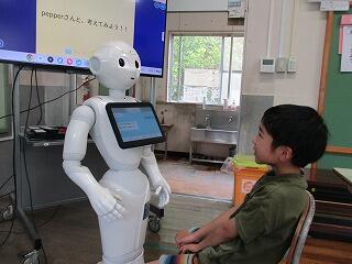 ↓ 3・4年生は学級活動でした。Pepperを活用してプログラミングに挑戦しました。親子で考える姿も見られました。テーマは「港小のことをしょうかいできるPepperくんにしよう」です。