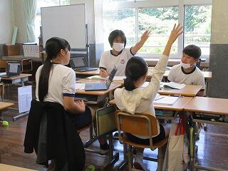 5年生の国語の時間です。グループで話し合いながら、学習を進めました。