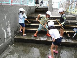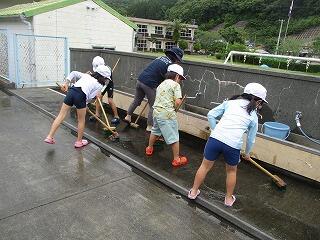 次に、大掃除をしました。丁寧に掃除をして、1学期にお世話になった学校をきれいにしました。