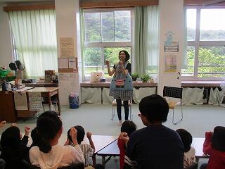 絵本は、「ボンバルボン」「あらまっ!」「オバケや」などを読んでもらいました。とても、楽しいお話でした。また、折り紙を使ったお話や指人形の紹介、手遊び等教えてもらって、一緒に体験しました。子どもたちは、笑顔いっぱいで活動を楽しんでいました。心がほっこりするすてきな時間になりました。ありがとうございました。