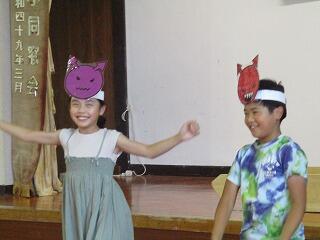 5年生です。5・6年合同の音楽をしたり、図工で新聞紙をつないで建物をつくったり、水泳をしたりしました。