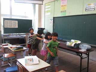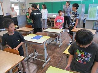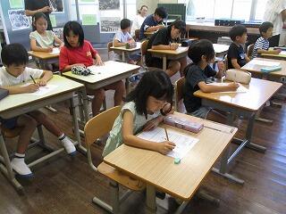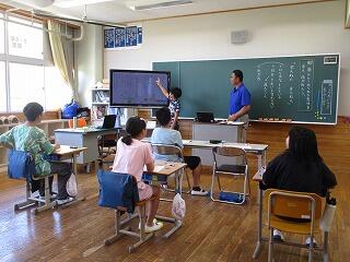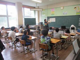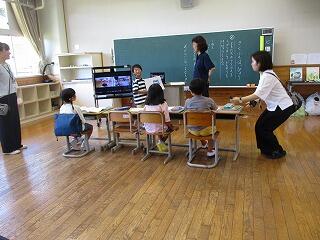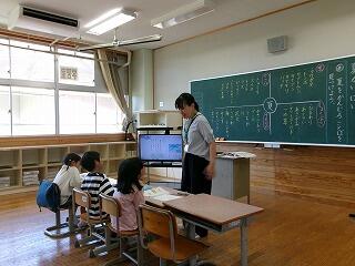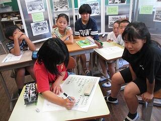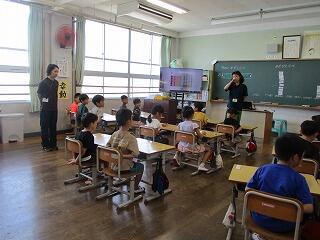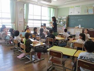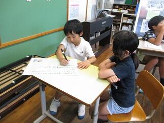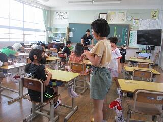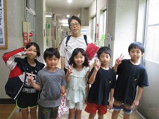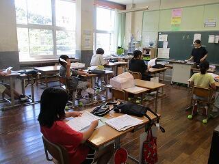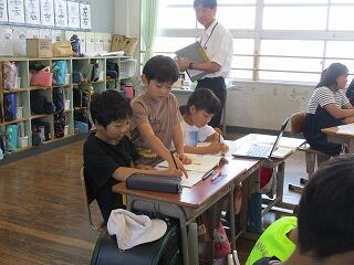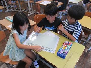 7月8日、浦城小学校と熊野江小学校のお友達と一緒に、交流学習がありました。浦城小学校で1日、学習をしました。