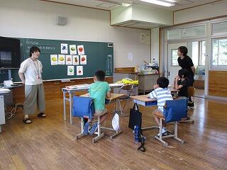 7月19日、年に一度の川島小学校との交流学習がありました。路線バスで川島小へ行きました。子どもたちは、それぞれの学年の教室へ行き、川島小のお友達と一緒に学習しました。