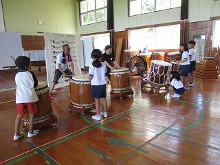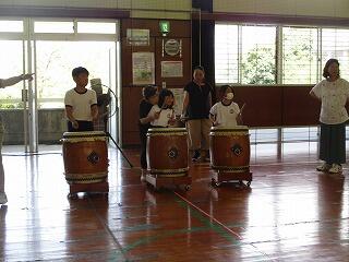 7月9日、今年度1回目の『港わんぱく太鼓』の練習がありました。本年度も、雲海太鼓の平野さんにご指導していただきます。子どもたちは、久しぶりの太鼓の練習を楽しみにしていたようです。はじめて太鼓の練習に参加する1年生も、上級生の様子を見たり、平野さんご夫婦から優しく教えていただいたりしながら、太鼓を楽しんでいました。今日は、『のべおか新ばんば踊り太鼓』の練習を中心に行いました。暑い中での練習でしたが、一生懸命取り組む様子が見られました。「太鼓、楽しい!上手になりたい!」という気持ちが伝わってきました。次の練習も、楽しみです。