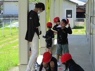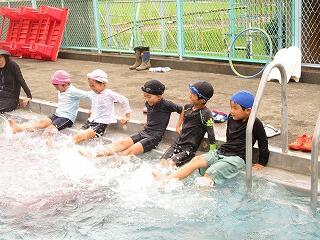 7月23日(火)は、5回目の水泳学習でした。浦城小学校のプールで、浦城小のお友達と一緒に水泳学習を行いました。この日が、今年度最後の水泳学習でした。プール納めです。