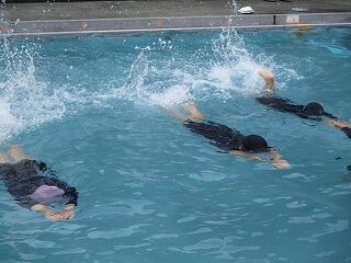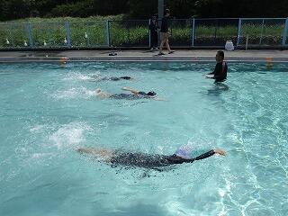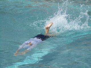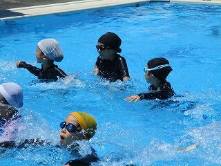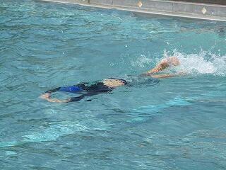 今回は、これまでの練習の成果を発表する記録会を行いました。子どもたちは、それぞれ自分の目標に向けて努力してきました。「いろいろな浮き方ができる」「けのびができる」「バタ足で泳ぐ」「力強くバタ足をする」「クロールの息継ぎができるようになる」「クロールで15m泳ぐ」「クロールで25m泳ぐ」「平泳ぎで50m泳ぐ」等です。記録会では、自分の目標を発表した後、泳ぎました。友達や先生からの応援をもらって、一生懸命泳ぐ姿が見られました。本当に、よくがんばりました。子どもたちの成長ぶりに感動しました!